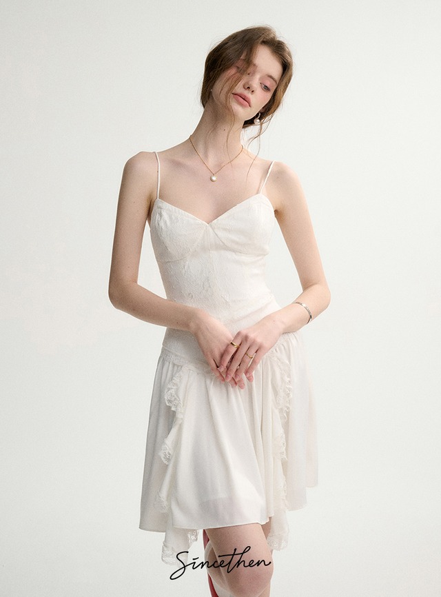 • SinceThen キュート レース フリル Aライン ショートワンピース